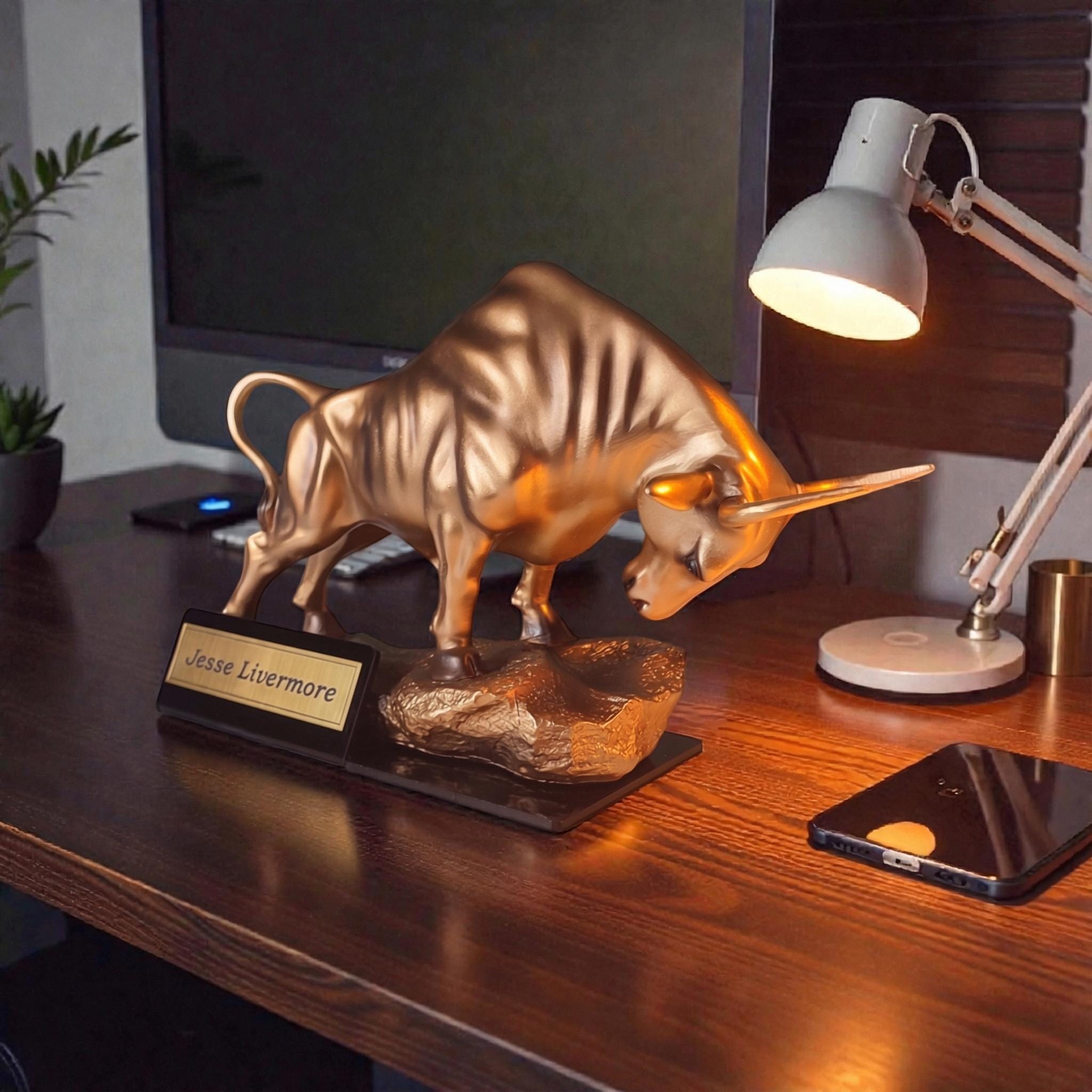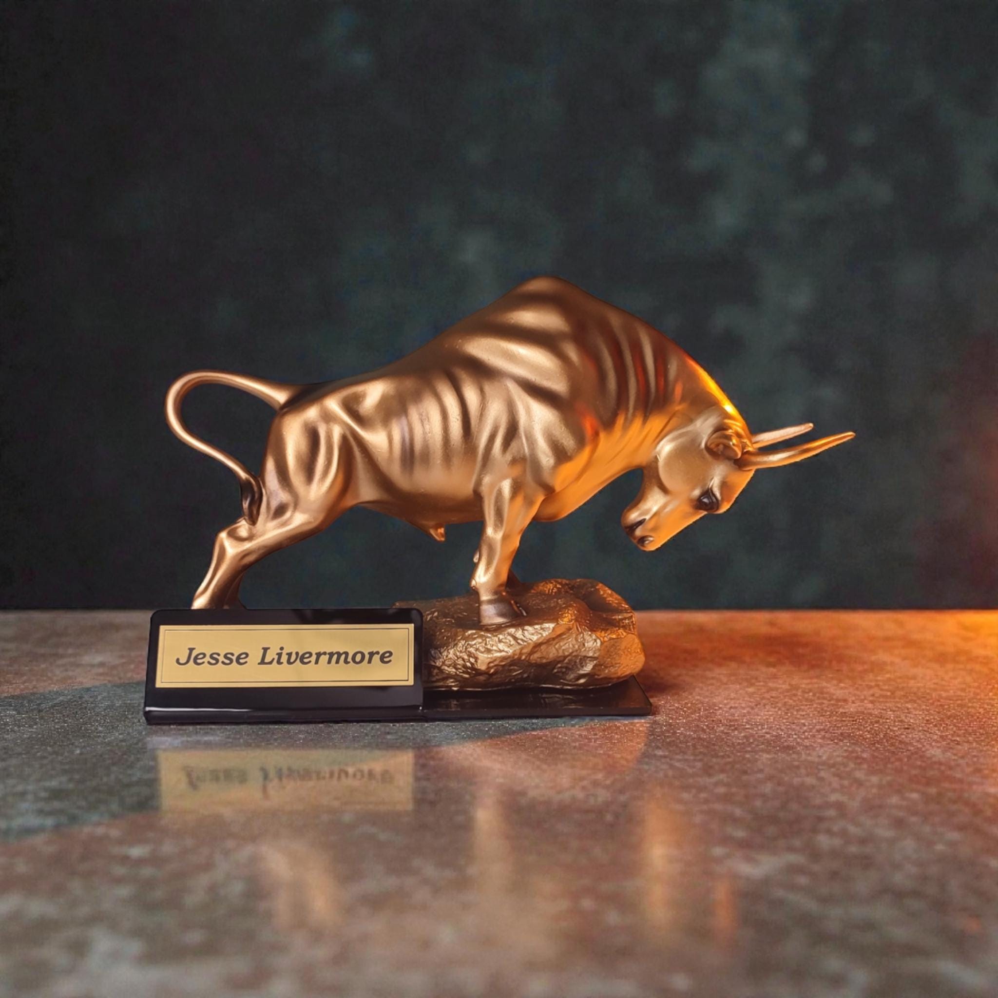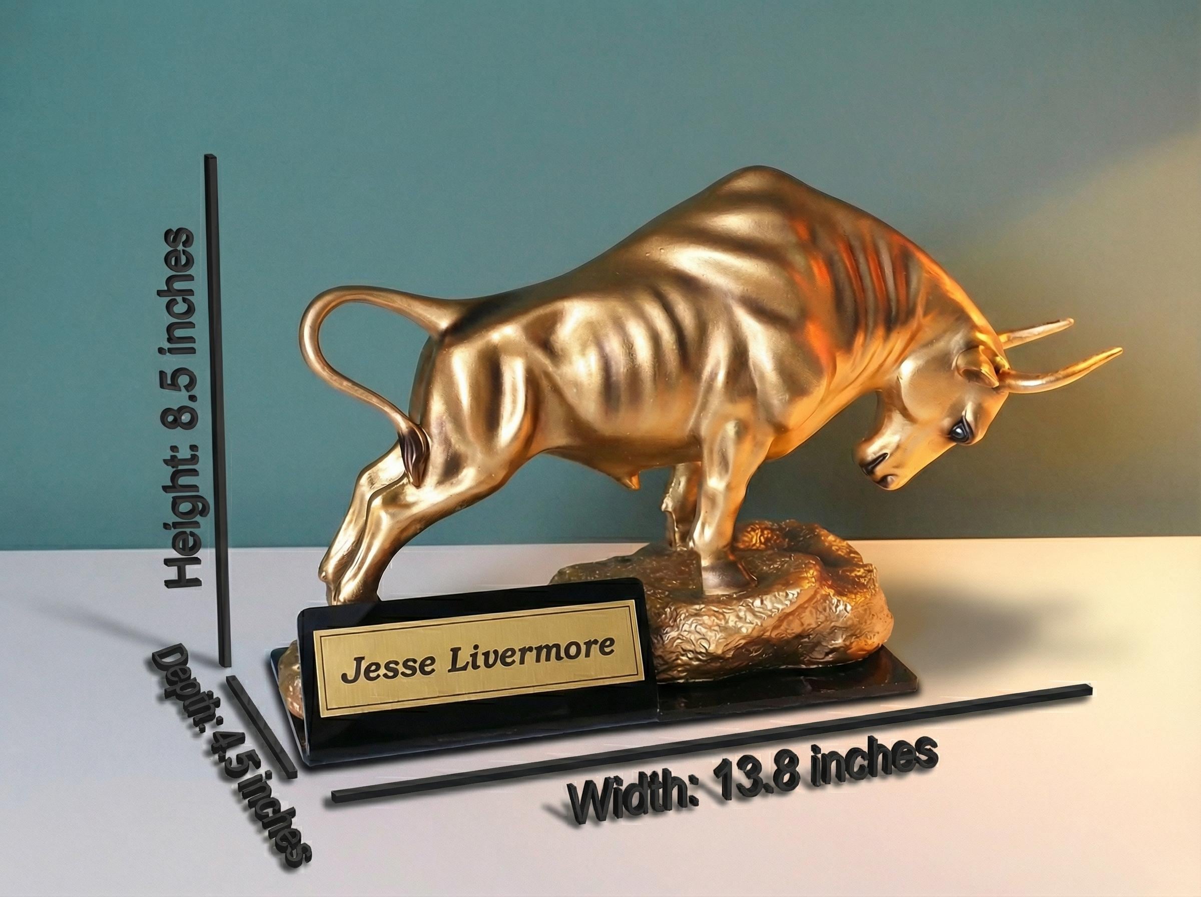 Make it unique! We can engrave any name, title, or short quote on the gold plate attached to the base (e.g., "Jesse Livermore", "Master Trader", "Future Millionaire"). Please enter your desired text in the personalization box.