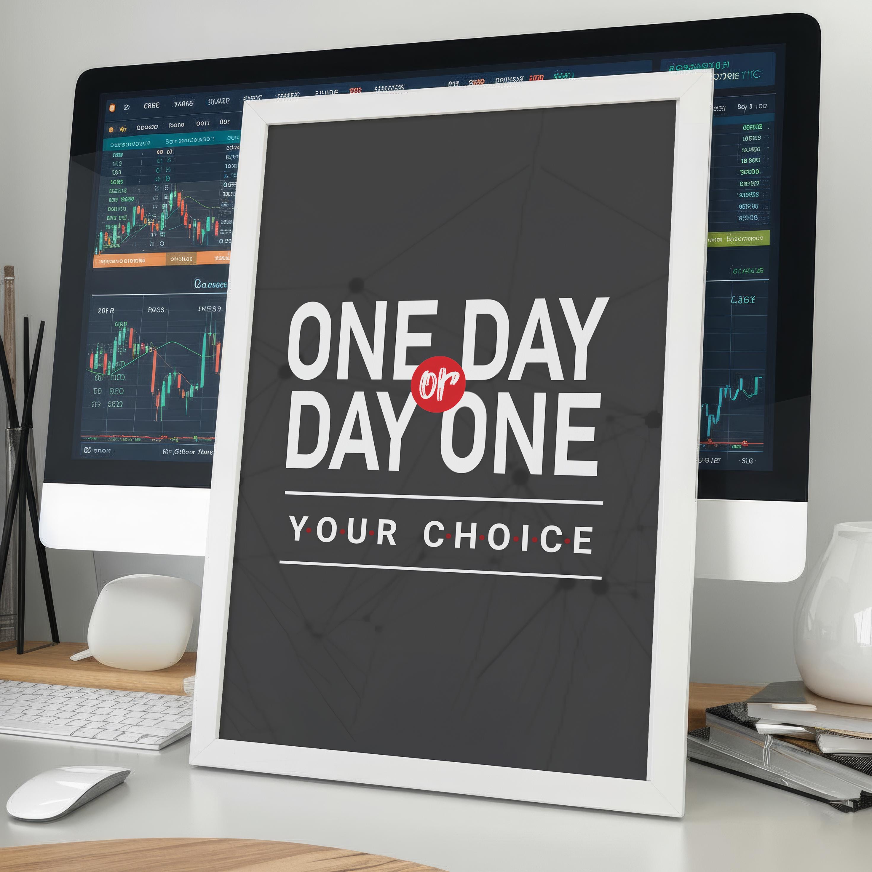 A rolled poster with bold, motivational typography that reads “ONE DAY or DAY ONE — YOUR CHOICE.” Printed with giclée quality for vivid, lasting color, this design sits on a deep charcoal background with subtle geometric texture. Choose from fine art, semi-glossy, or matte paper finishes and select horizontal or vertical orientation to suit your space. The poster arrives rolled for safe shipping and makes a focused, energizing addition to home offices, creative studios, workout areas, or study nooks. Its confident message pairs well with minimal frames or clipped-hanger displays and holds up over time thanks to archival-grade printing options.