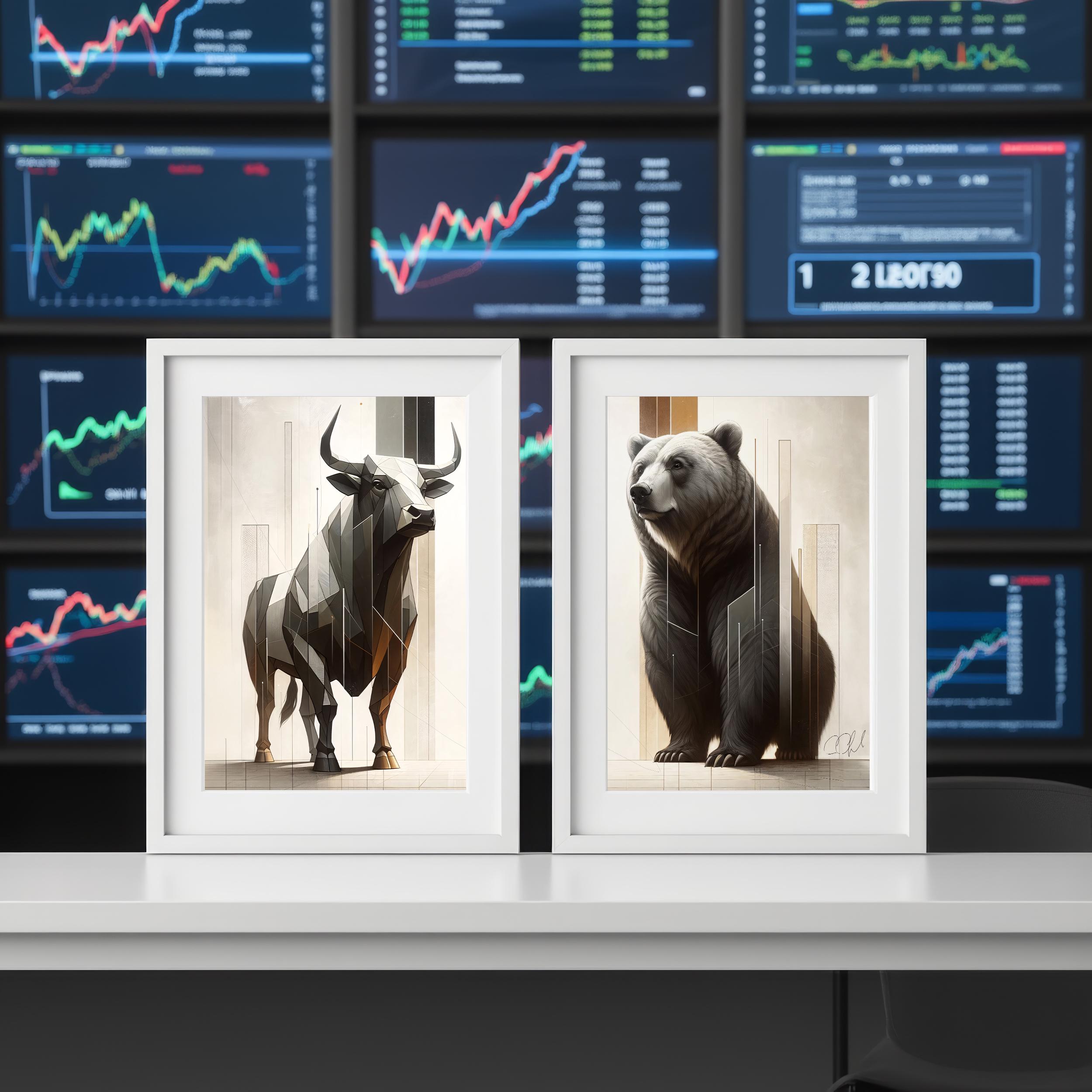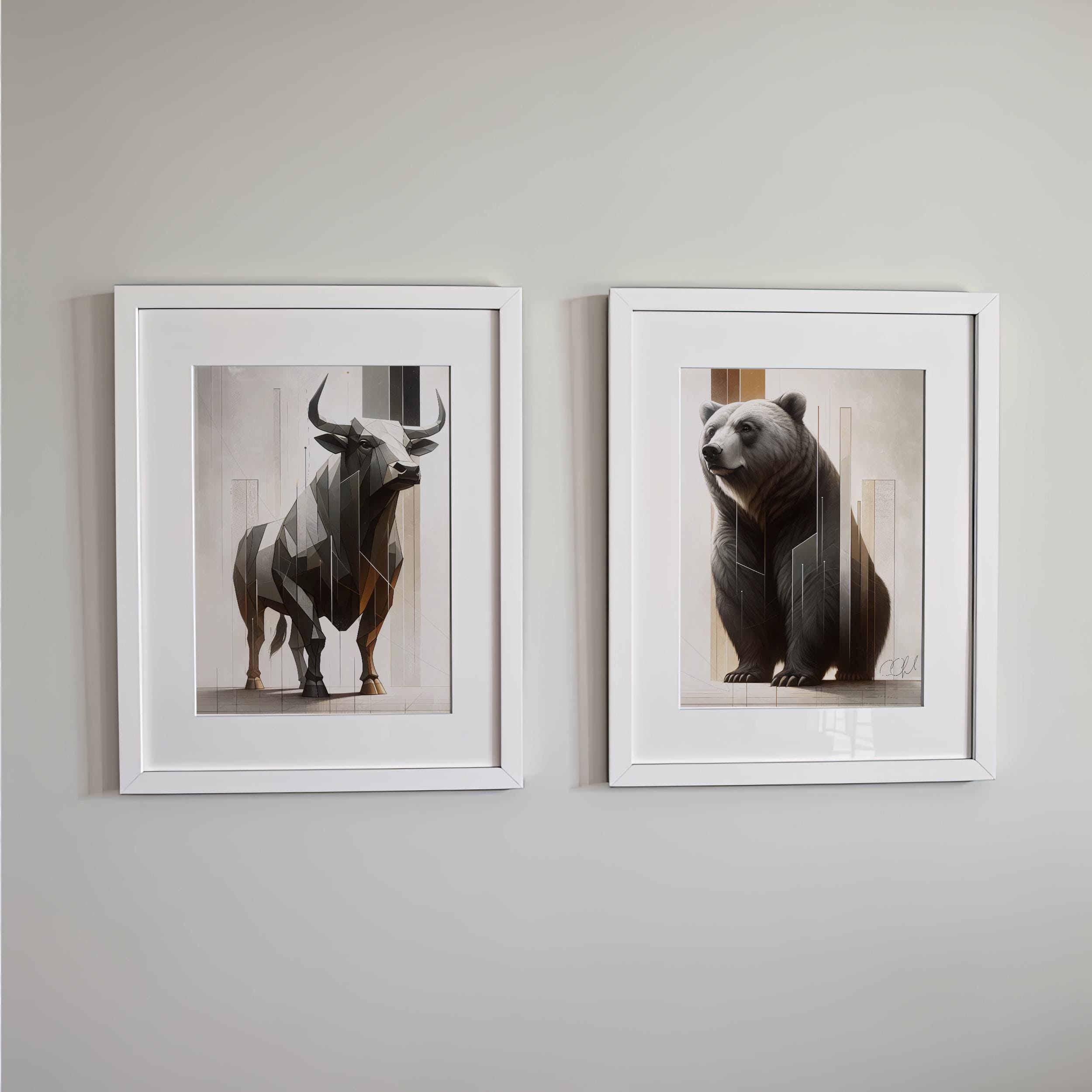 Strength meets structure in this Geometric Bull and Bear Fine Art Print Set — a modern interpretation of market psychology through form and precision.