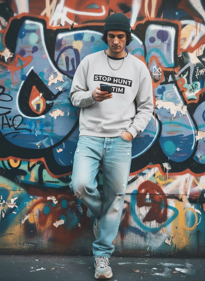 The “STOP HUNT VICTIM” design blends humor with minimalist style, making it the perfect piece for forex, crypto, and stock market lovers.