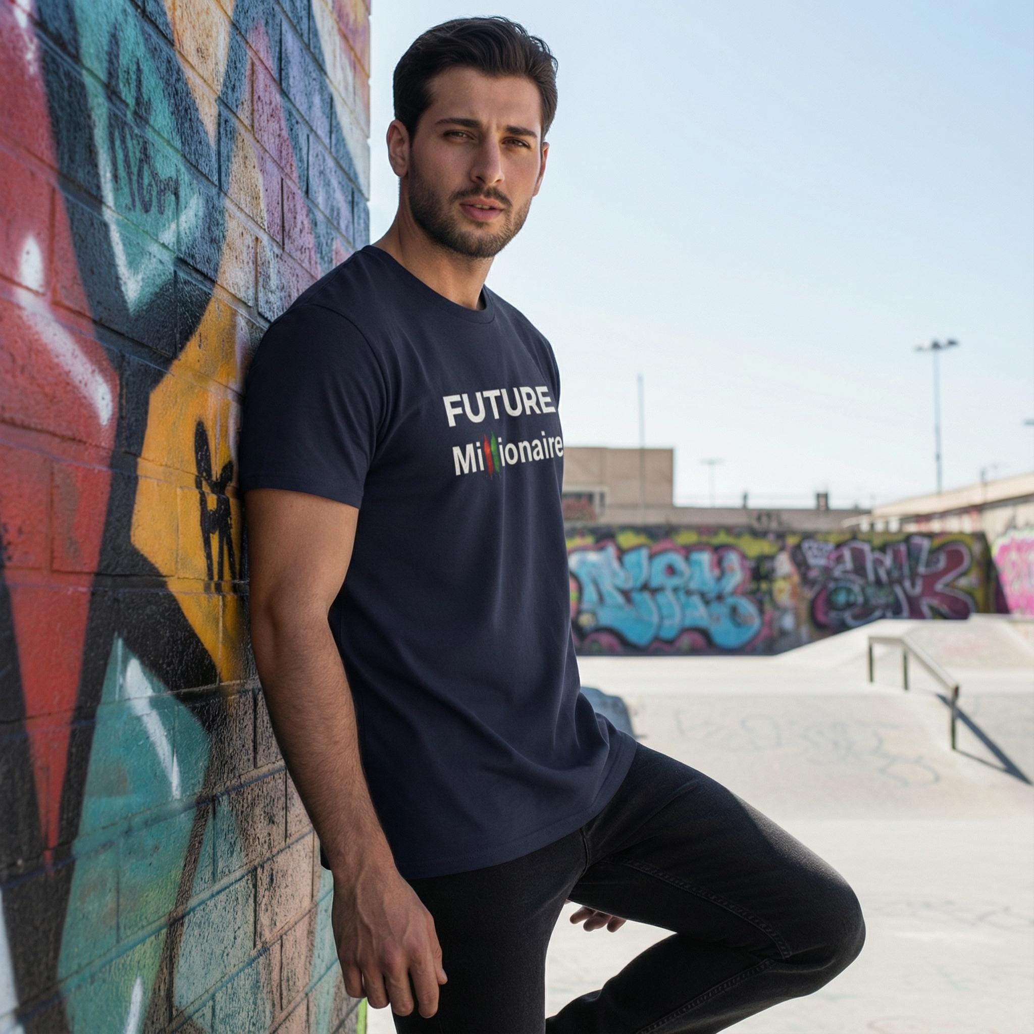 This minimalist yet powerful design features a clean typography layout with red & green candlestick bars inside the word “Millionaire”, inspired by stock market charts. Perfect for anyone into trading, crypto, or finance culture.