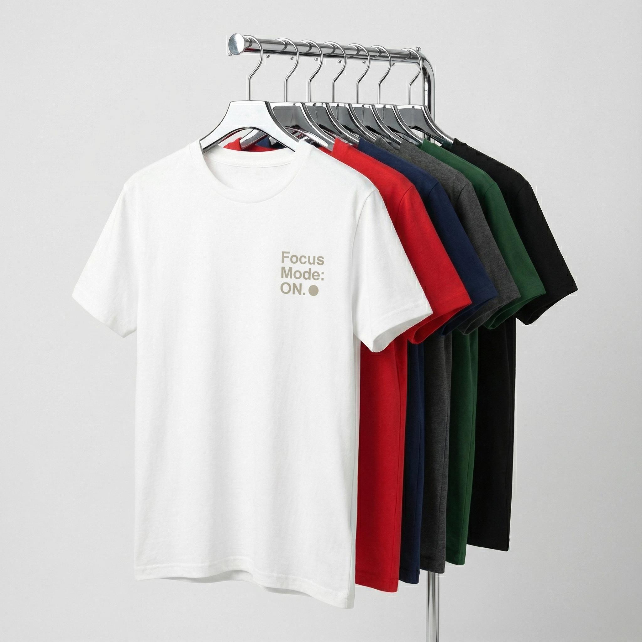 This “Focus Mode: ON.” minimalist t-shirt is designed for creators, coders, students, entrepreneurs, and anyone who thrives in deep-work mode. Simple, clean typography printed on a premium unisex tee makes it perfect for everyday use, work sessions, study days, gym training, or productive mornings.