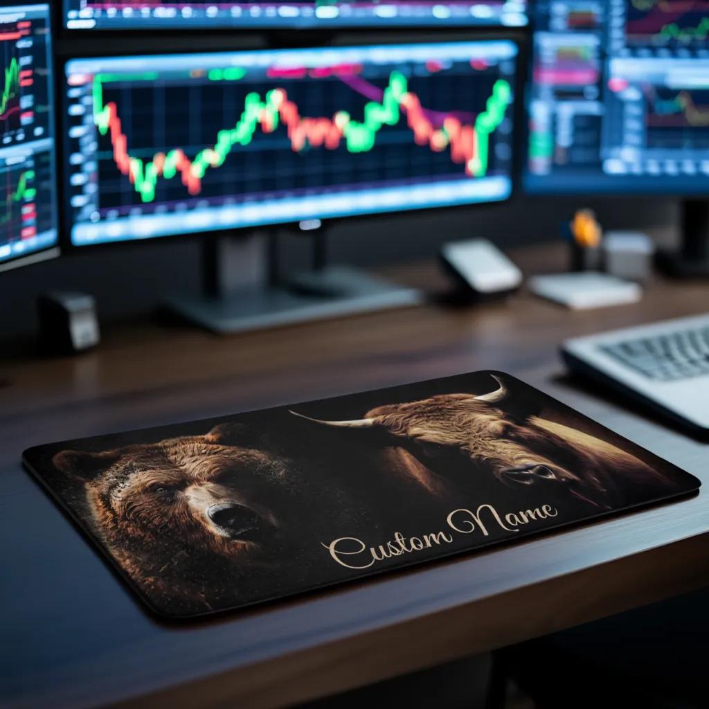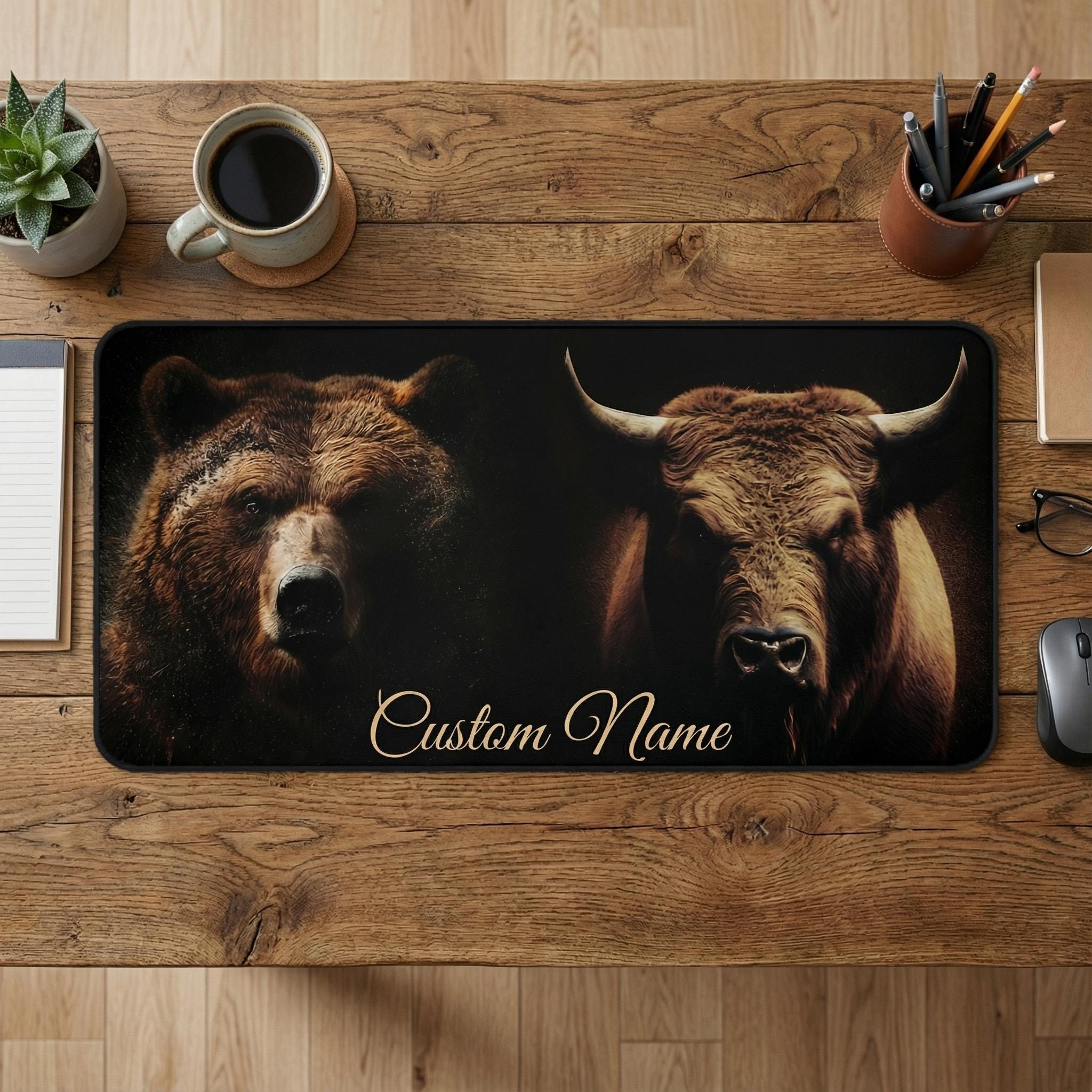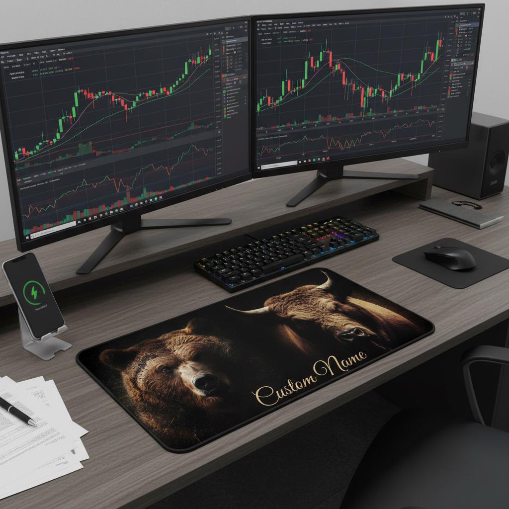 Personalized Stock Market Desk Mat, Bull and Bear Mouse Pad, Wall Street Office Decor, Day Trader Gift, Finance Crypto Investor Gift, XL Pad
