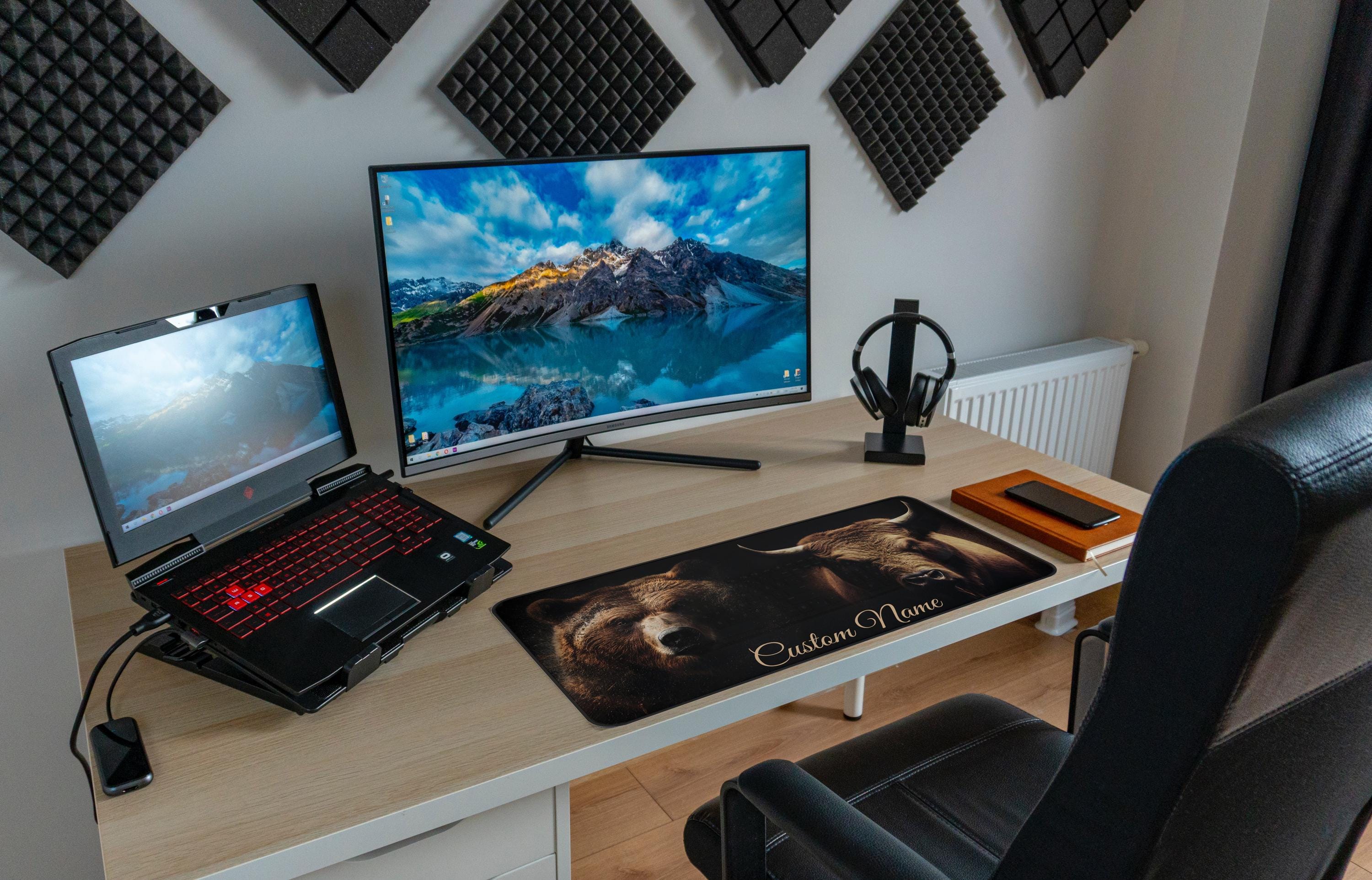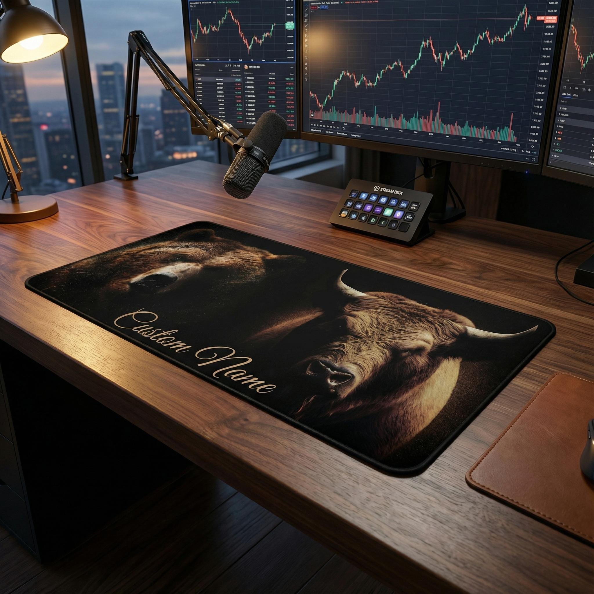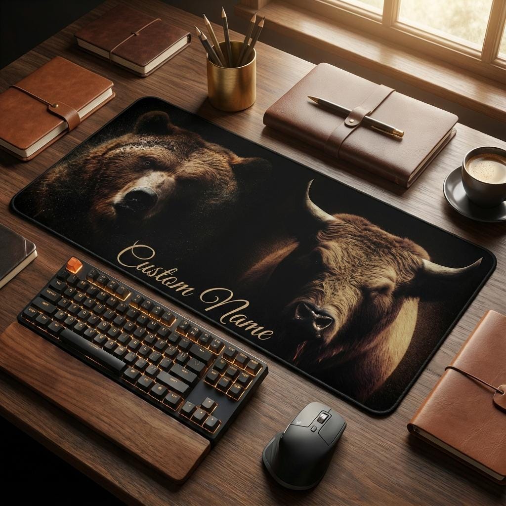 Personalized Stock Market Desk Mat, Bull and Bear Mouse Pad, Wall Street Office Decor, Day Trader Gift, Finance Crypto Investor Gift, XL Pad