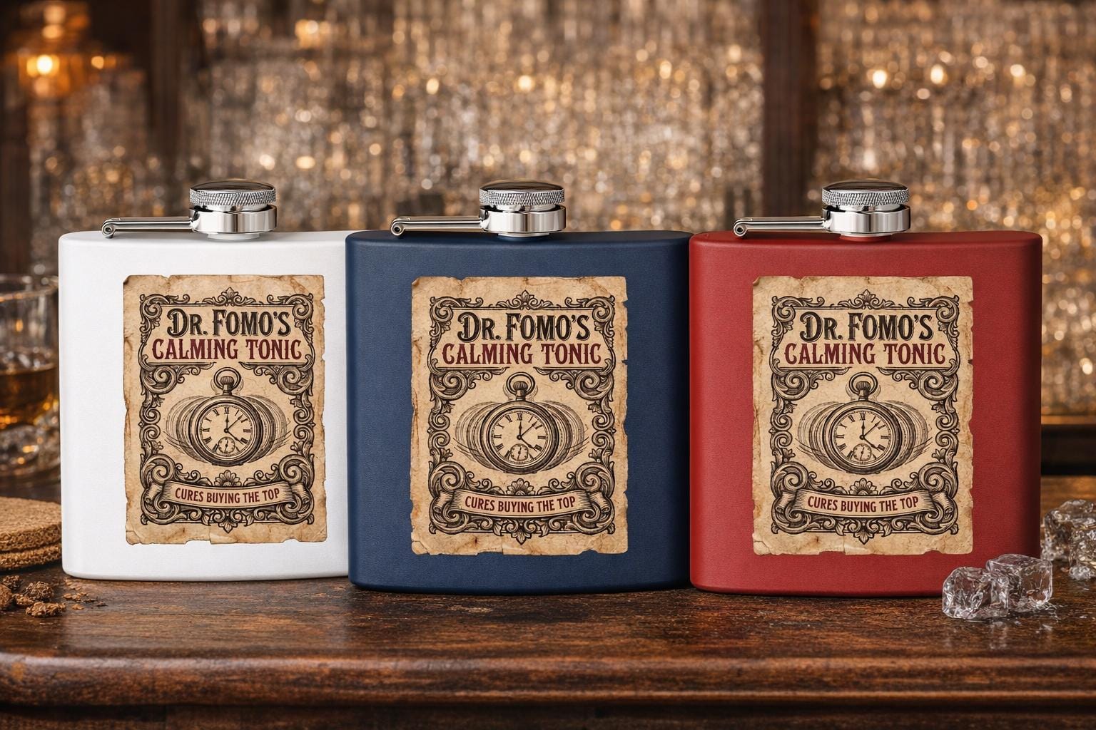 Introducing the ultimate remedy for volatile markets: Dr. FOMO's Calming Tonic Flask.