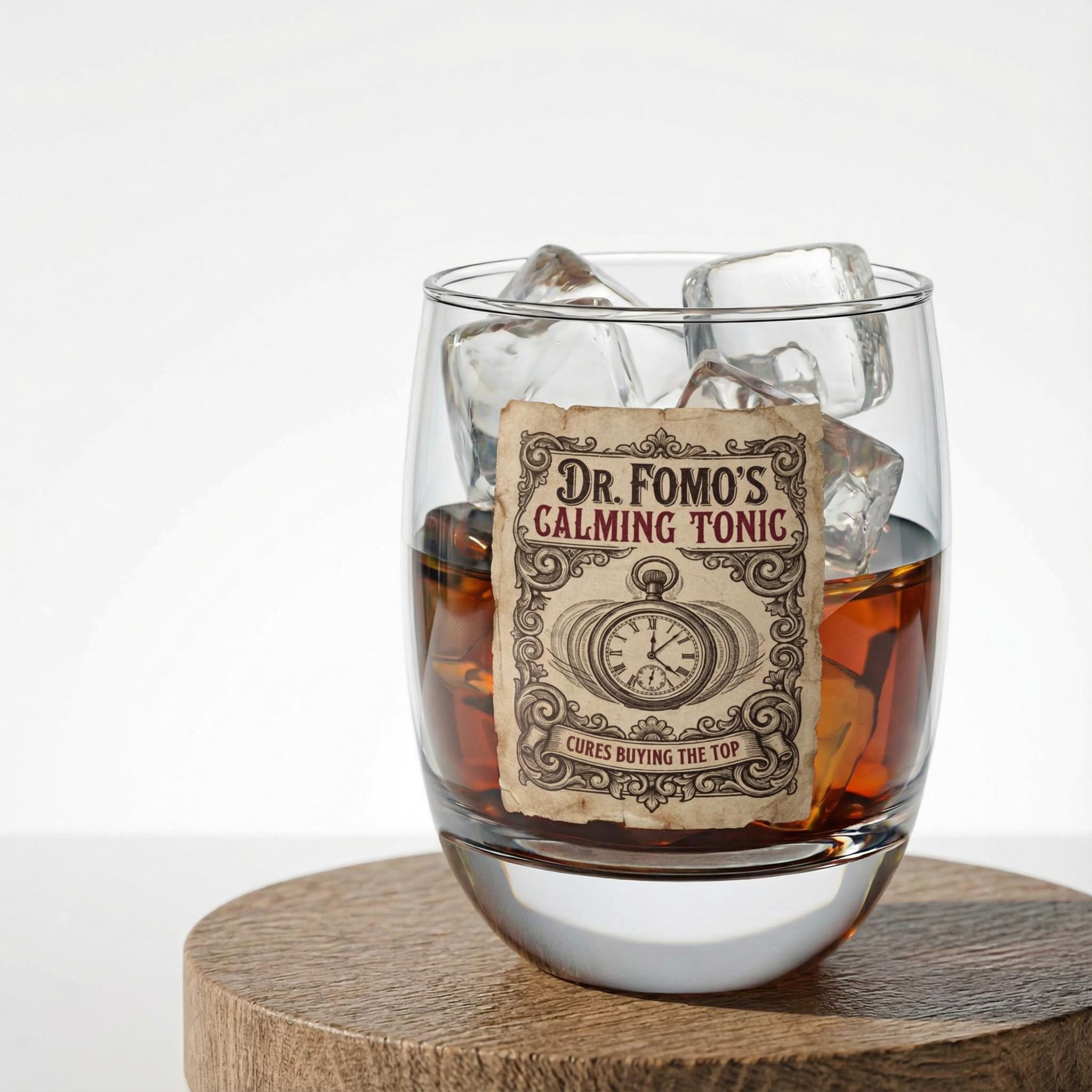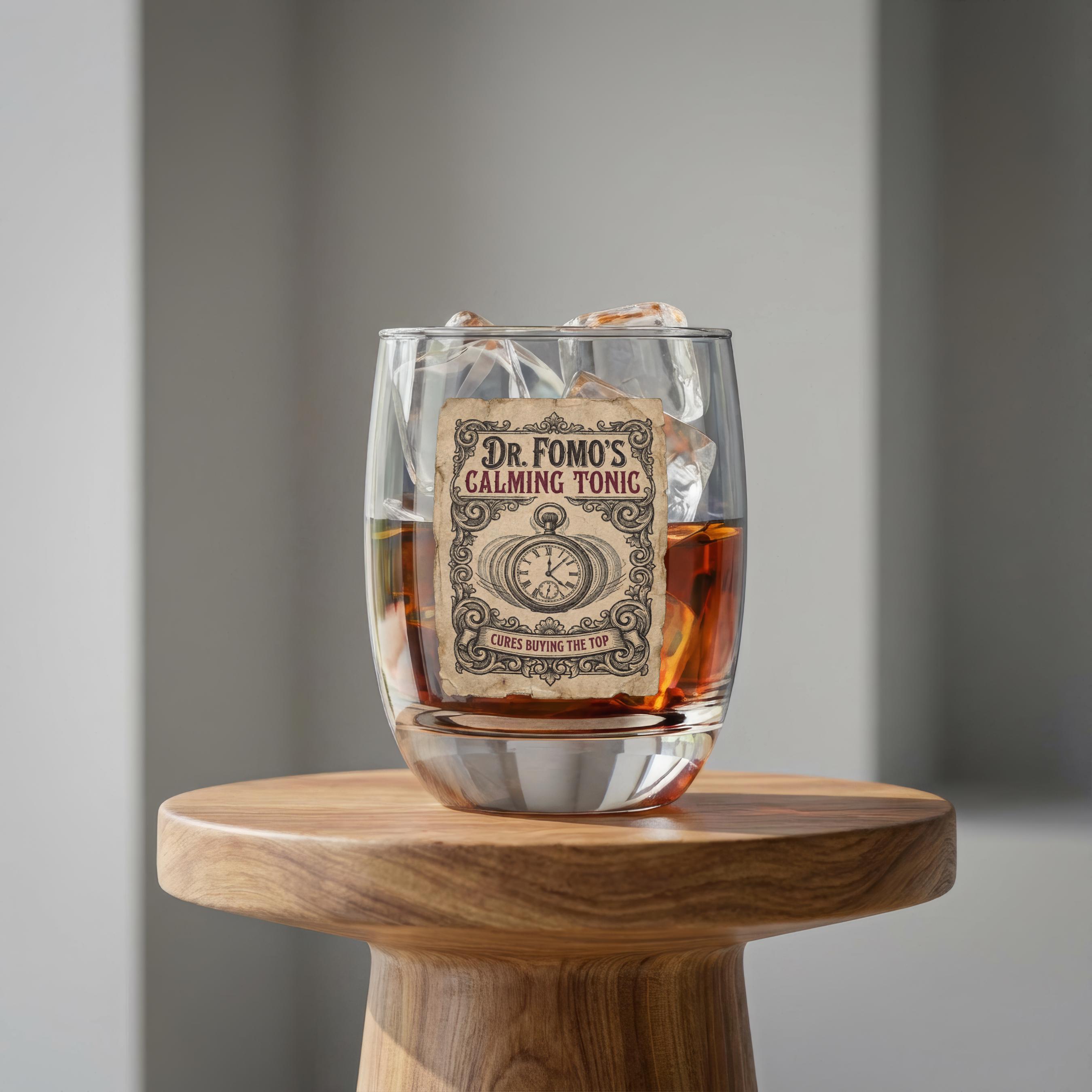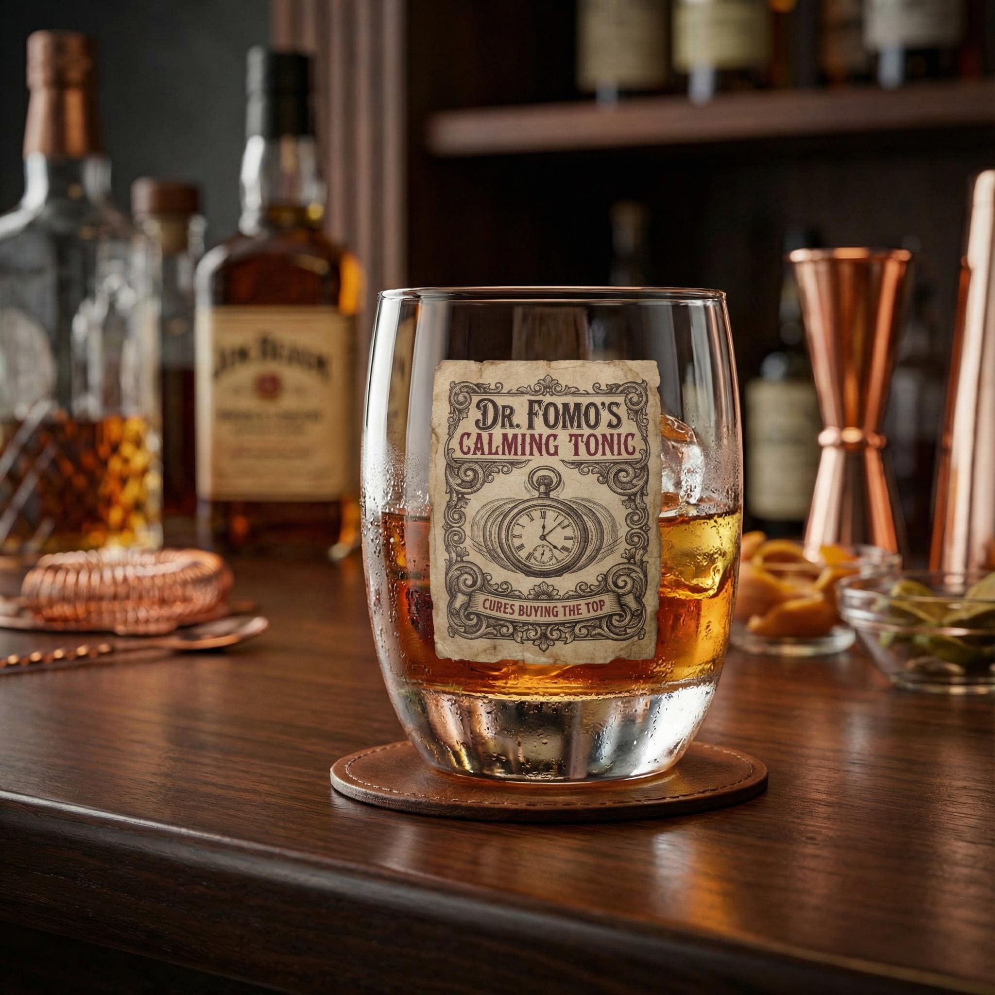 Introducing the Dr. FOMO's Calming Tonic Whiskey Glass. The only approved cure for the stress of volatile markets and questionable trading decisions.