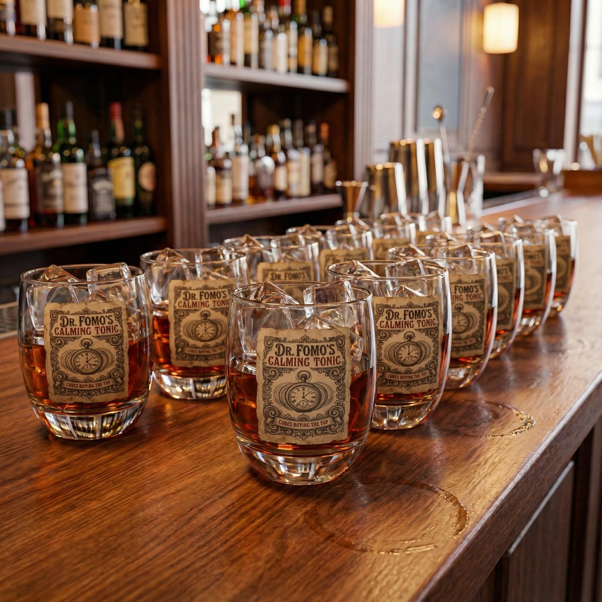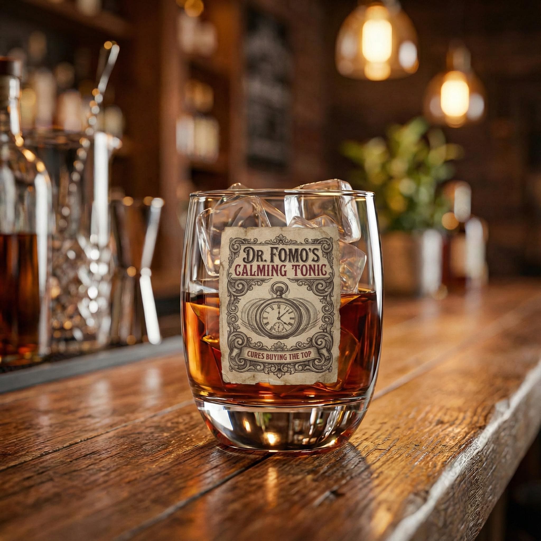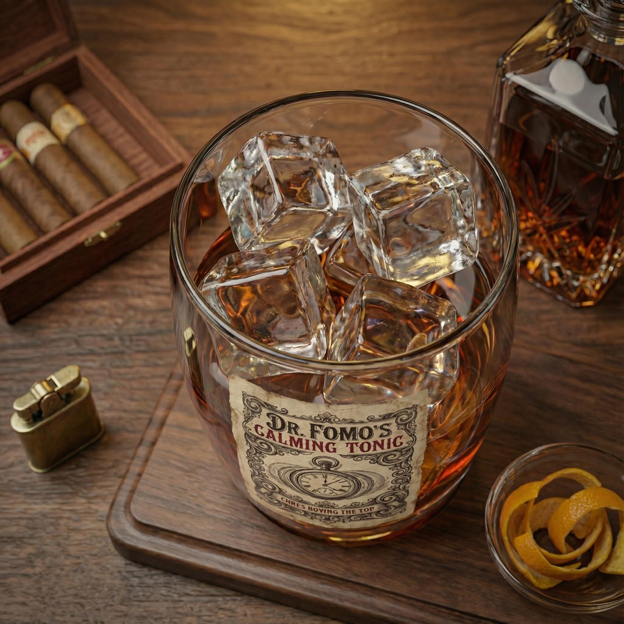 Introducing the Dr. FOMO's Calming Tonic Whiskey Glass. The only approved cure for the stress of volatile markets and questionable trading decisions.