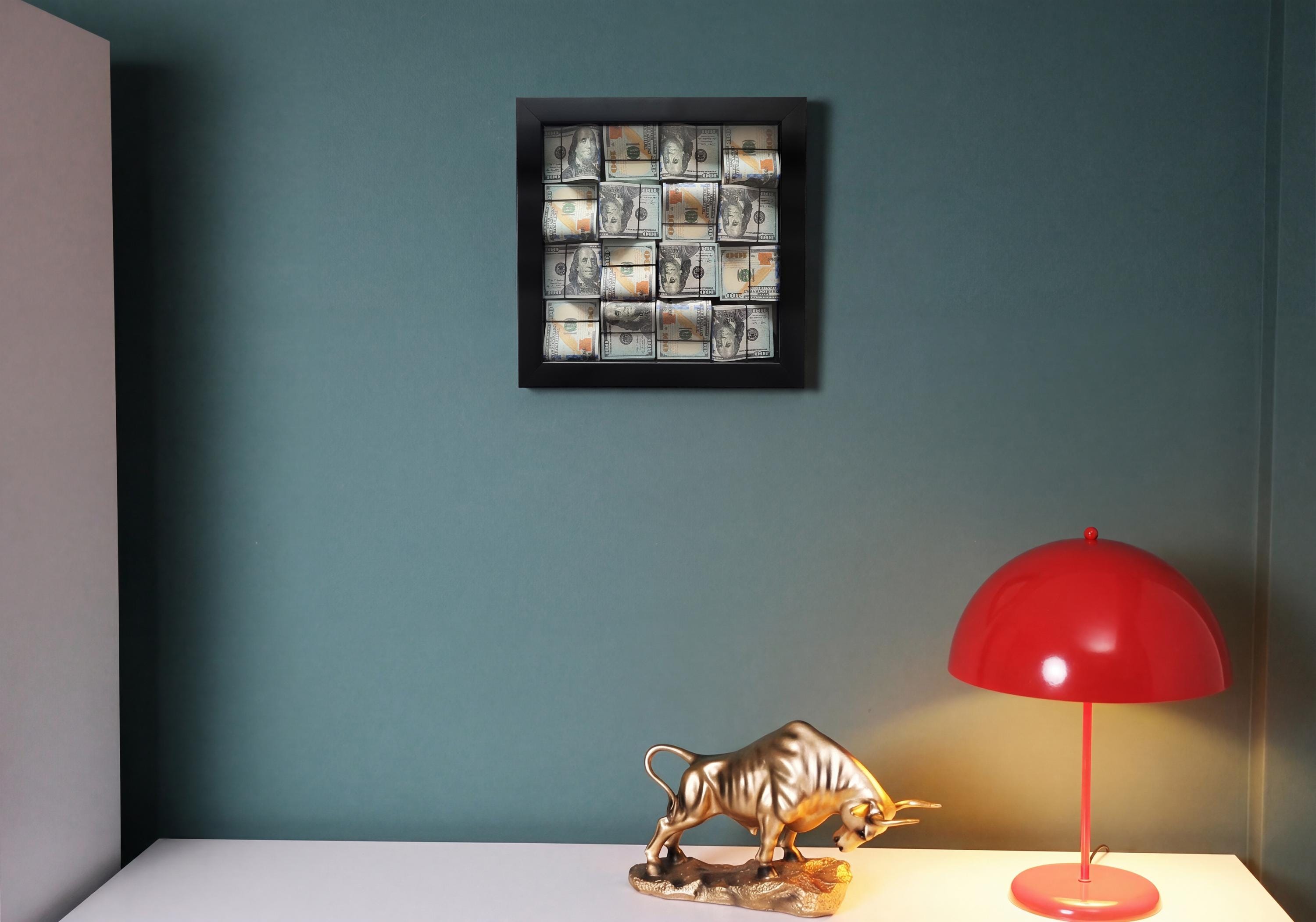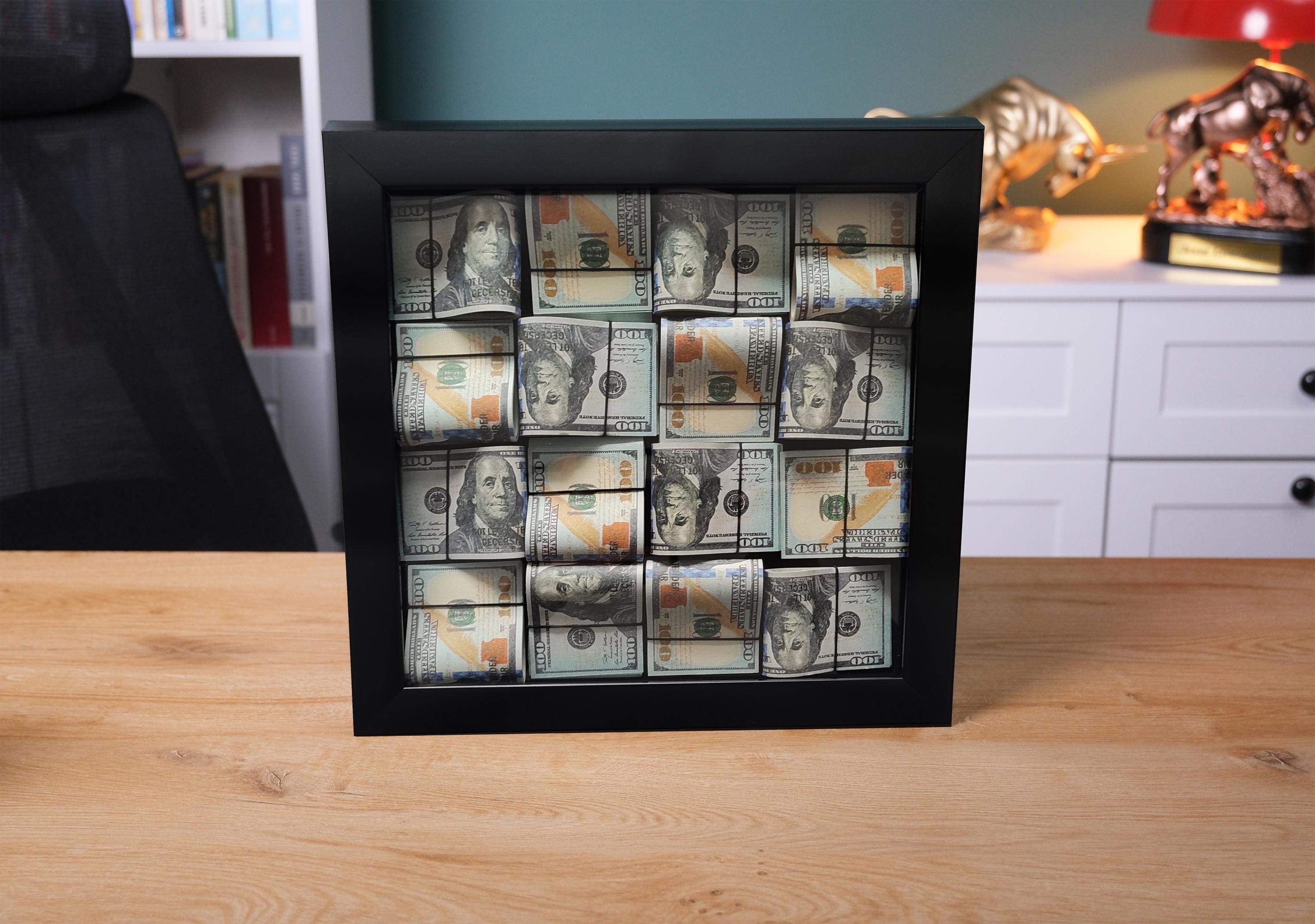 Luxury Money Wall Art, Black Frame Dollar Decor, Trader Office Wall Decor, Valentine Gift for Him, 13"x13", Office Opening Gift Idea